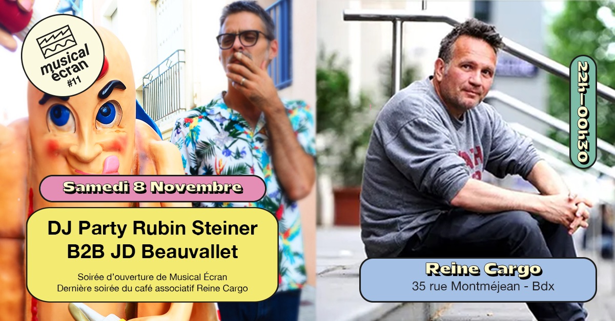 Musical Ecran et Reine Cargo vous proposent – après la journée d’inauguration du festival au Megarama – une soirée à Reine Cargo avec deux DJs d’exception : Rubin Steiner et JD Beauvallet.
